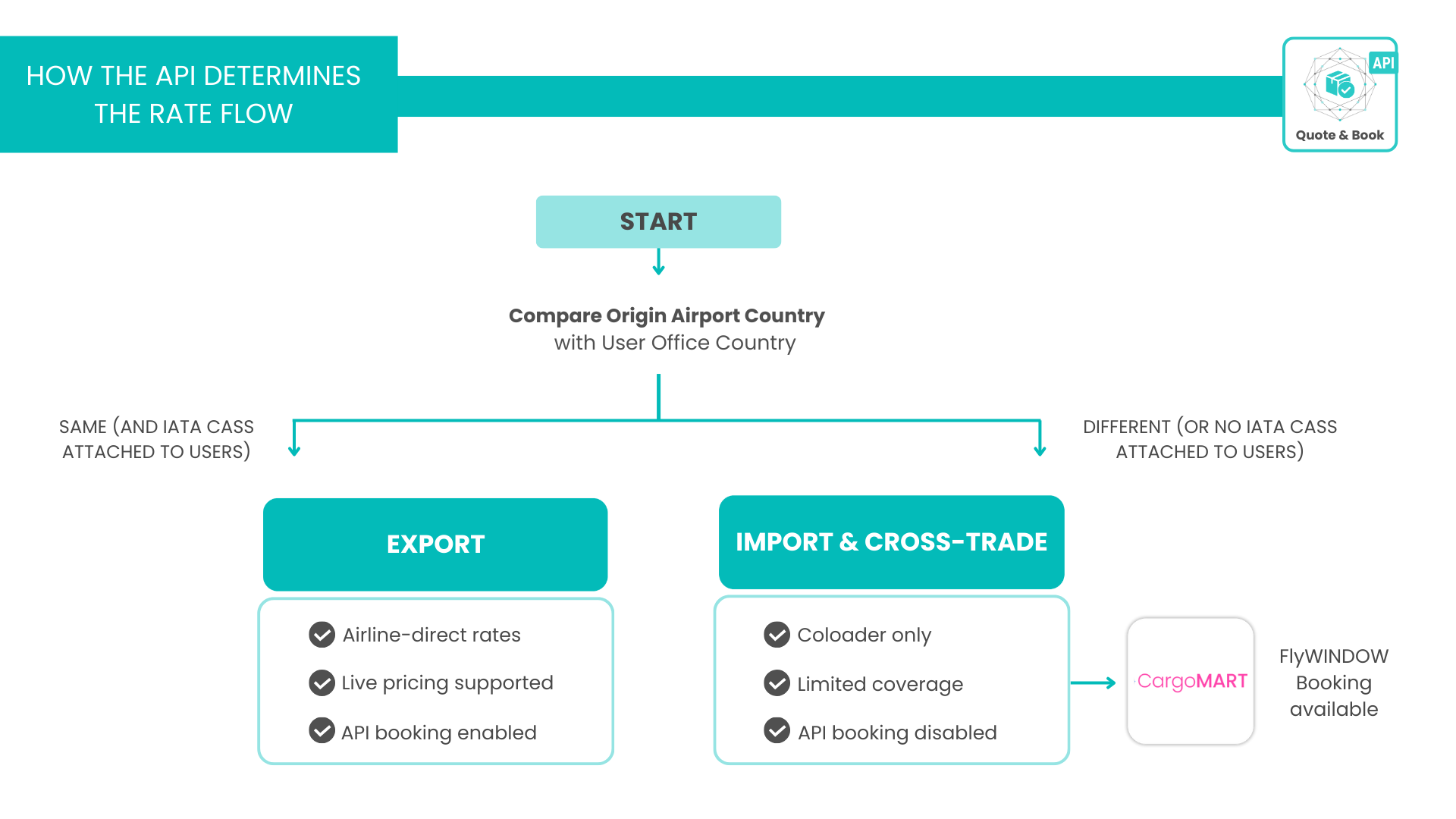 | Export | Market | N | Can't be booked through API or FlyWINDOW Through FlyWINDOW, manual quote request at airline can be initiated | Market rates are returned when no CASS rate (based on own or Co-Loader CASS) can be provided on the trade lane |